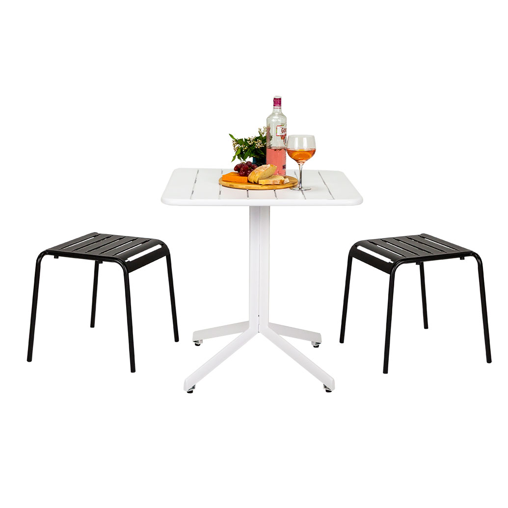 Made from E-Coated steel for all-weather resistance, smooth finish and durability. Andre is available in modern colours, with square dining tables and bar tables to match.