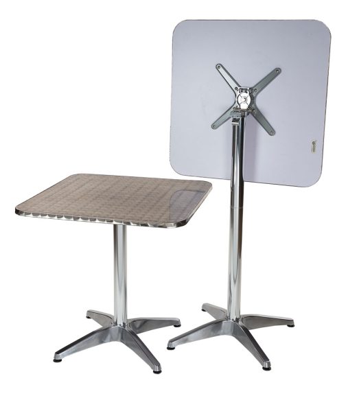 This is our chameleon product – the Miguel round table fits in anywhere! The high gloss stainless steel tabletop provides a fancy finish on a simple design. This table is also lightweight and easy to fold and store away at the end of a big night.