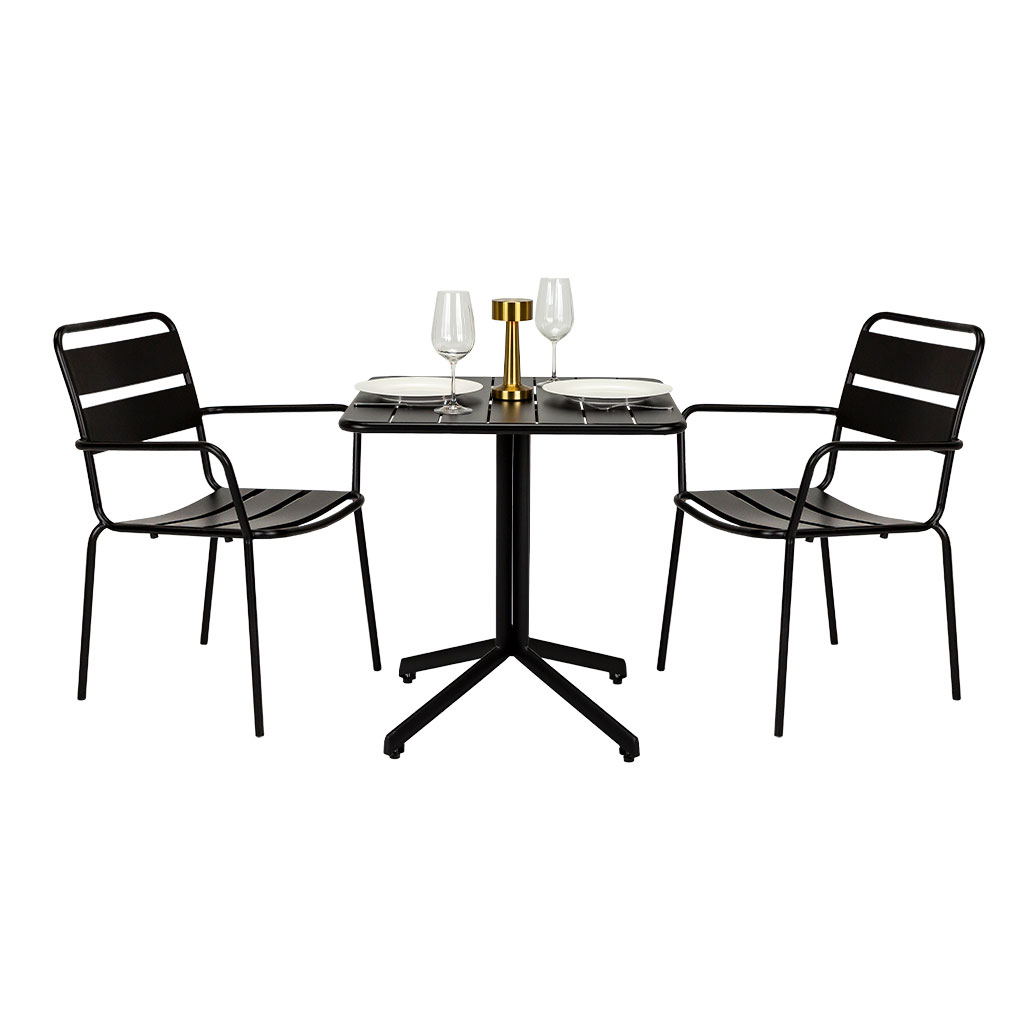 Regis — Ready for Service. Tough, tidy, and full of charm, Regis is the chair that plays well in busy cafés, bars, and dining spaces. With a high backrest, E-coat weather resistance, and four bold colours, it’s stackable, stylish, and always on duty.